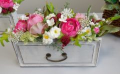 今月の秋田テルサのレッスン作品の紹介です。木製の引き出し型やリボン付の箱型の器は、お好みの花の色で素敵な作品ができました。引き出し型の器は、白とグレイ...